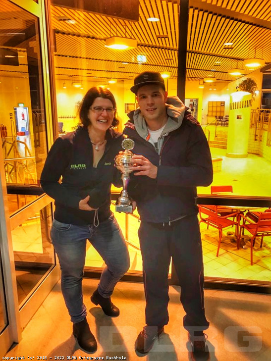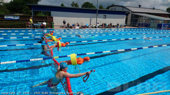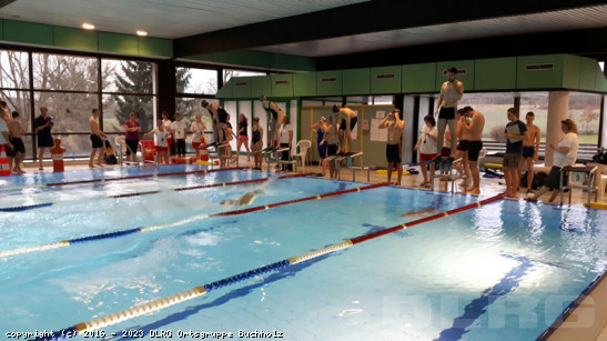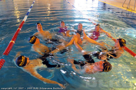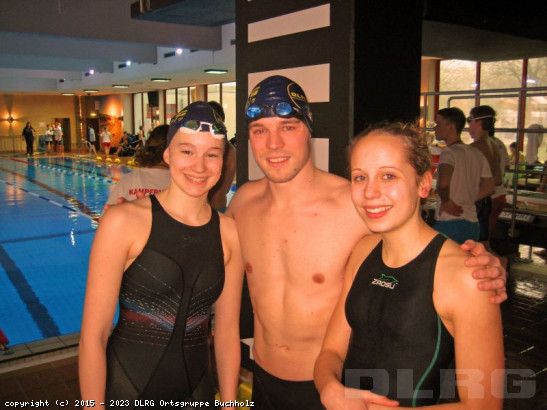 (Buchholz, 17.01.2015). Insgesamt 25 Schwimmer in den Altersklassen 10 bis 15/16 Jahre starteten am Samstagmorgen bei den Ortsmeisterschaften in der Buchholzer Schwimmhalle. Für einige war es ihr erster Wettkampf, somit war die Aufregung natürlich groß. Nach dem Einschwimmen und einer kurzen Ablaufbesprechung starteten die Jüngsten in der Altersklasse 10. Es mussten Hindernisse untertaucht, Puppen gerettet und mit Flossen geschwommen werden. In der Altersklasse 15/16 w zeichnete sich schon früh das erwartete Duell zwischen Sina und Lisanne ab. Mit nur 10 Punkten Unterschied konnte sich Lisanne am Ende den Ortsmeistertitel sichern. Die Siegerehrung fand im Anschluss beim gemütlichen Mittagessen im Schulungszentrum statt. Wir danken allen Helfern für ... Mehr erfahren