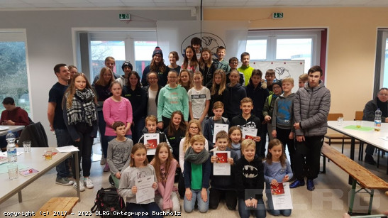 Samstag (01.12.18). Ein wiedermal erfolgreiches Wettkampfjahr neigt sich für die Buchholzer Rettungssportler dem Ende entgegen. Aufgrund von terminlichen Problemen konnten die Ortsmeisterschaften erst spät kommuniziert werden. Zusätzlich wurde das Meldeergebnis durch viele Krankmeldungen geschmälert. Nichts desto trotz traten 26 Sportler in allen Altersklassen an um erste Erfahrungen zu sammeln, bzw. in die neue Altersklassen zu starten. Bei der Siegerehrung im Anschluss wurden die Buchholzer Athleten der Deutschen Meisterschaften 2018 vom Referenten Rettungssport Max Frey für ihre starken Leistungen geehrt. Im Anschluss folgte die Siegerehrung der Ortsmeisterschaften und ein gemeinsames Abschlussessen. Wie immer gilt unser Dank unser genialen Kü ... Mehr erfahren